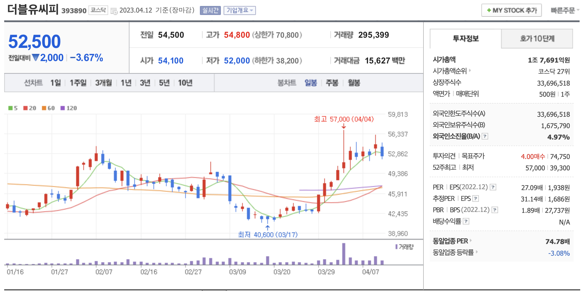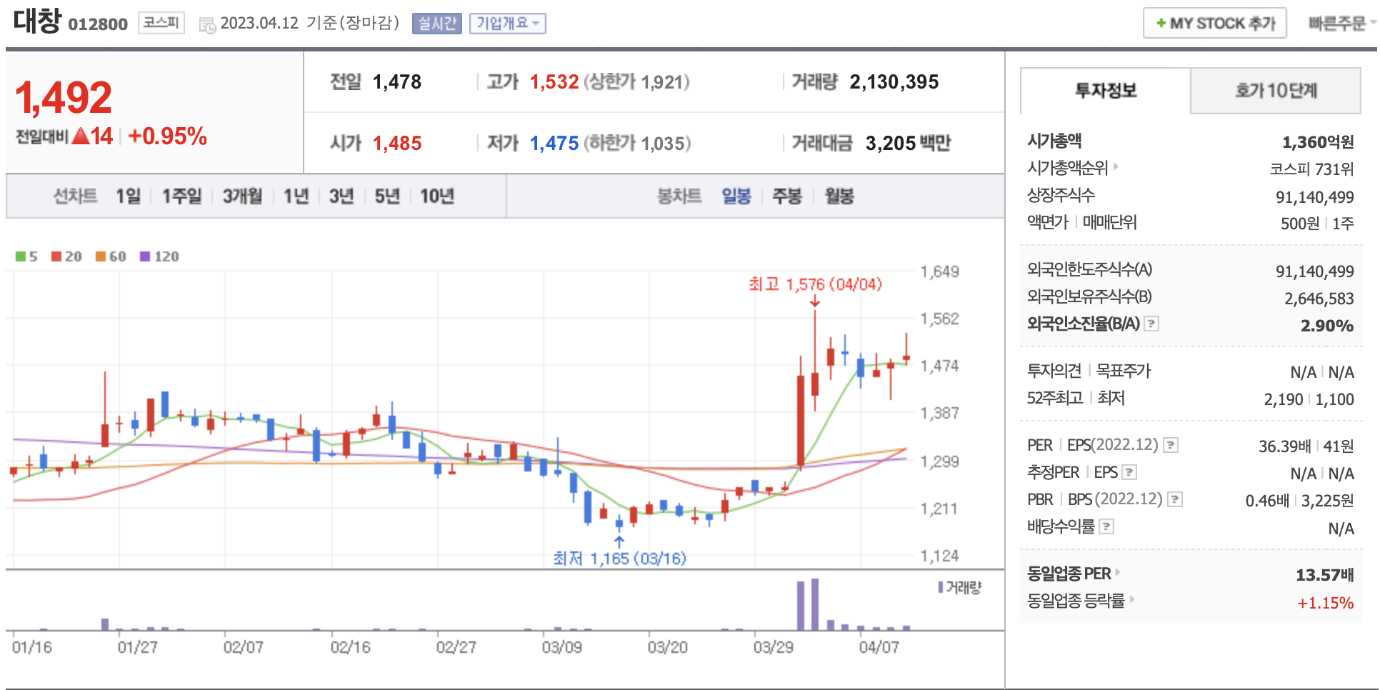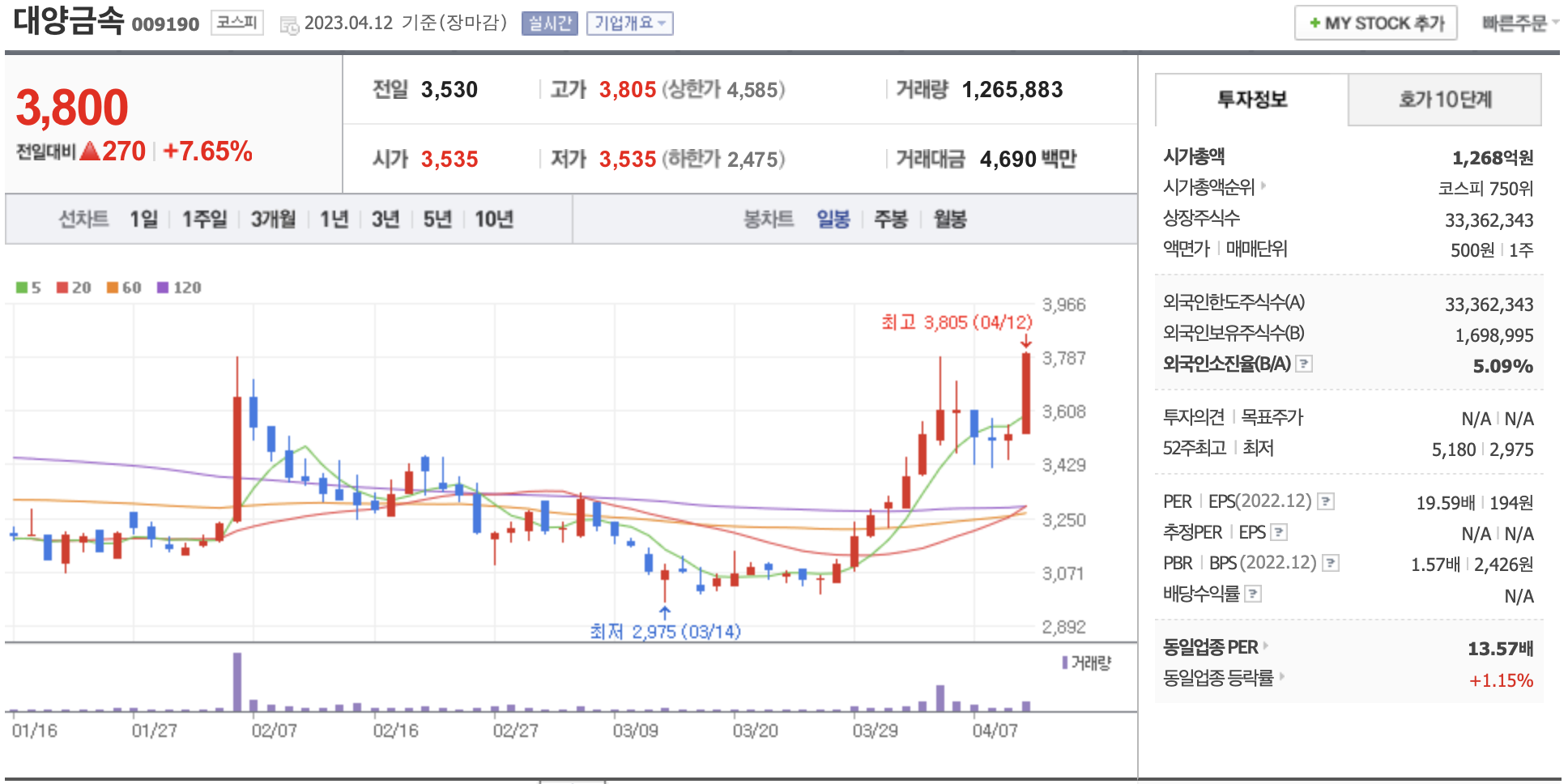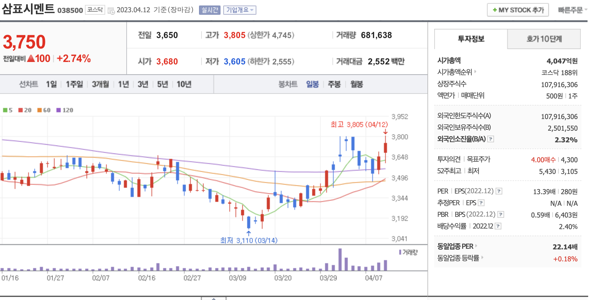 다음 종목들은 2023년 4월 4일 장종료 기준으로 단기(20일) 이동평균선이 장기(60일) 이동평균선을 돌파하는 경우의 종목입니다.