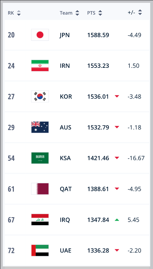 아시아 피파랭킹 순위 (2023년 6월 기준)
