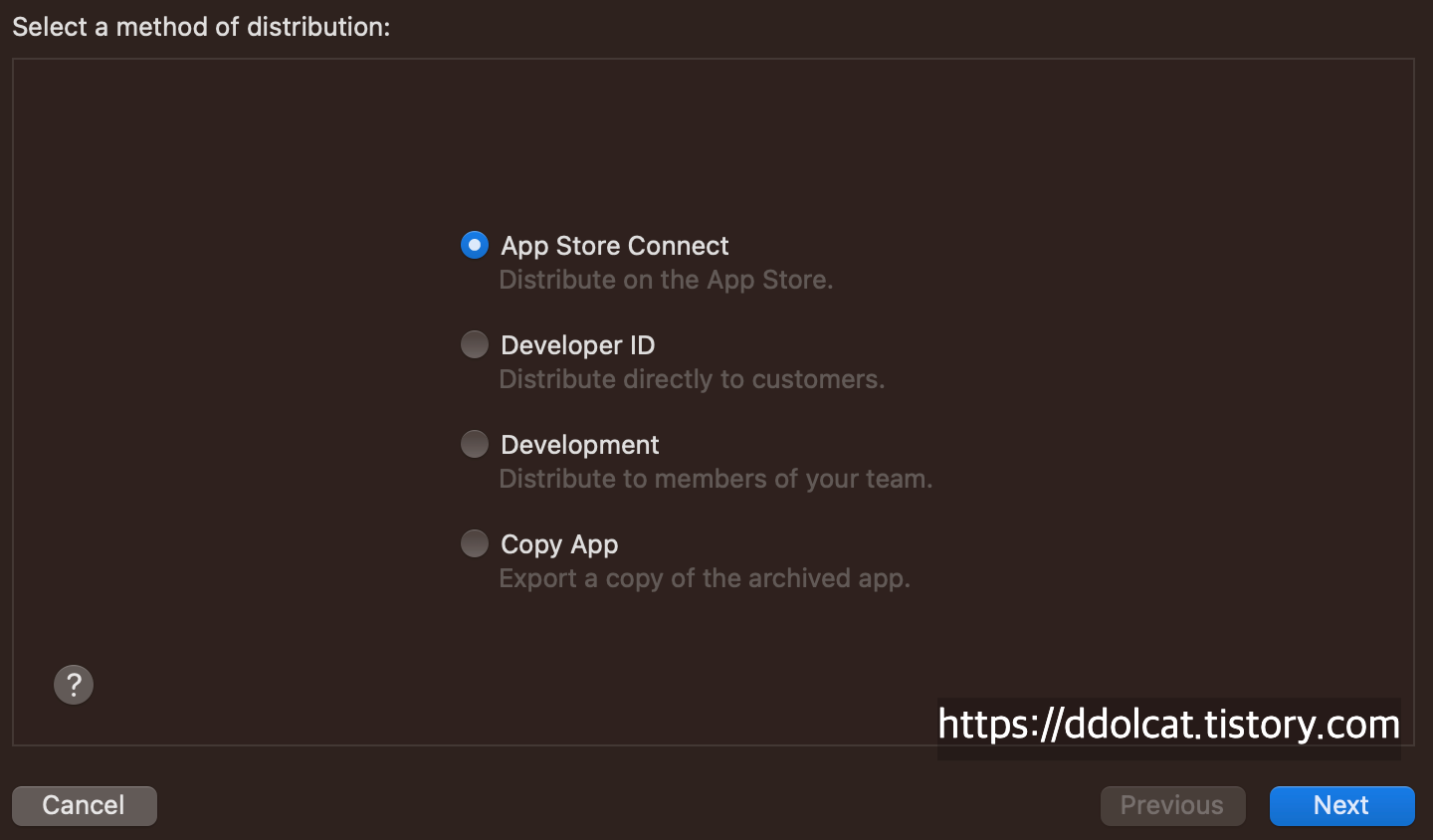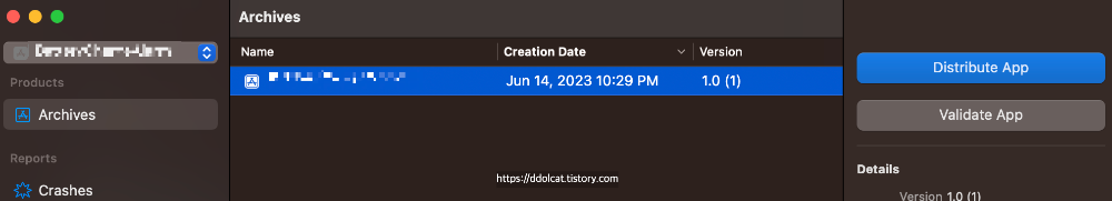 앱 배포파일 업로드를 위해 Product – Archive메뉴를 클릭하여 다시 시도했다.