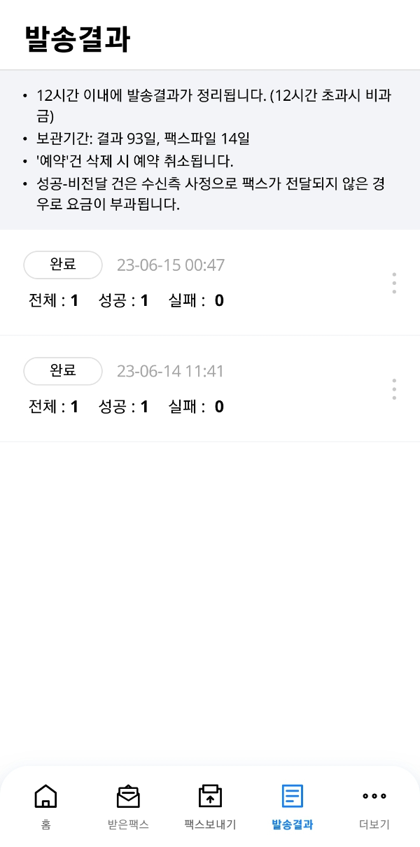 참고로 새로운 팩스 도착 시 푸시 알림을 준다고 한다.