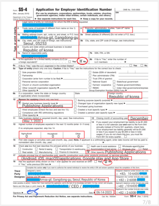 1. SS-4 양식 작성
