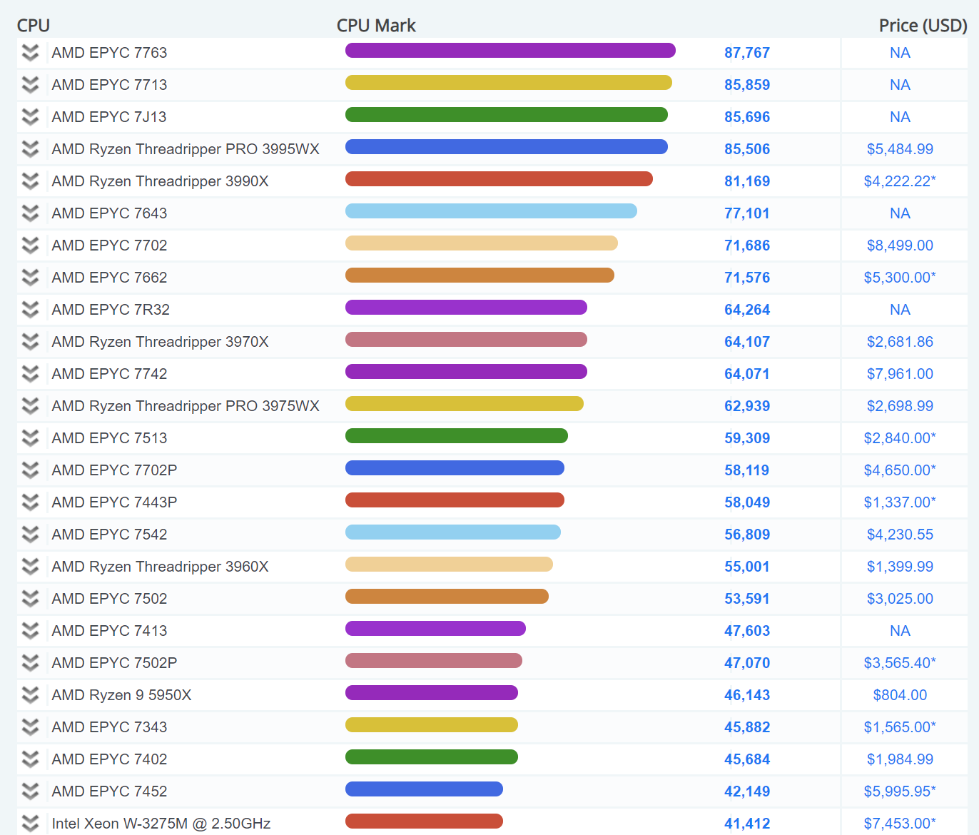 | 27 | AMD EPYC 7F52 | 40,468 |