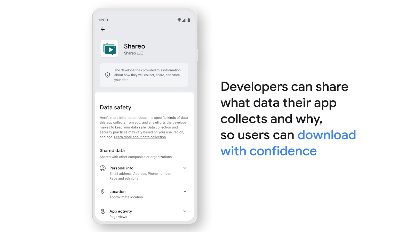 Google Play의 향후 안전 정책 준수에 도움을 드리고자 각 Firebase 제품이 수집하고 공유할 데이터를 명시하는 개발자 문서를 발표합니다. 개인정보 보호 및 투명성에 대한 Google의 약속을 바탕으로, 2022년에 앱 사용자에게 적용되는 Google Play의 새로운 데이터 안전 섹션을 미리 준비하도록 도와드리는 것이 저희의 목표입니다.