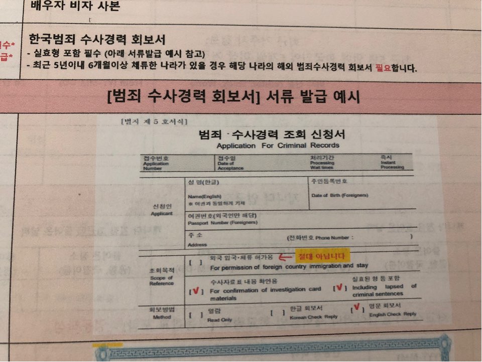 범죄수사 경력 회보서가 필요하기 때문이다.