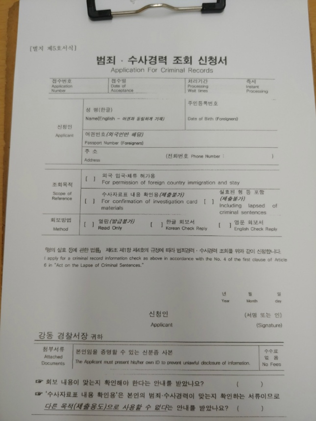 경찰서에 가서 범죄 수사경력 회보서를 발급 받아야하는 일이 생깁니다. 특히 캐나다에서 워크 퍼밋을 받을 때, 또는 영주권 심사할때 캐나다 정부에서 요구합니다. 그러나 한국 경찰서에서는
