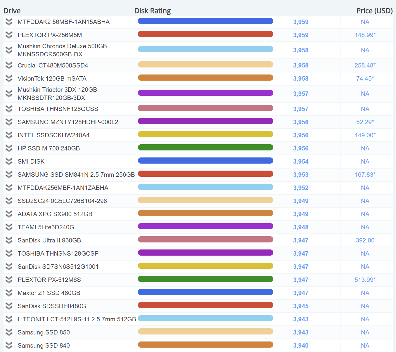 | 17 | SanDisk Ultra II 960GB | 3,947 |
