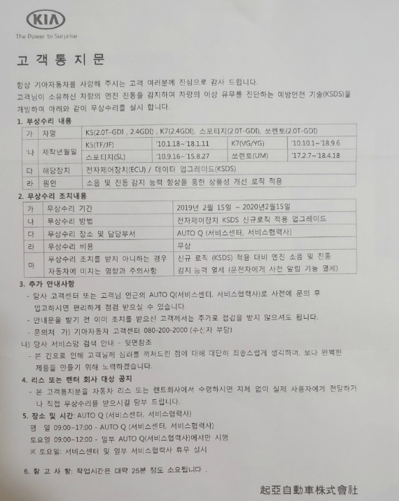 [리콜] 전자제어장치(ECU) / 데이터 업그레이드(KSDS)
