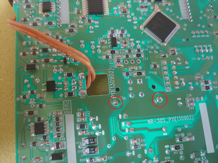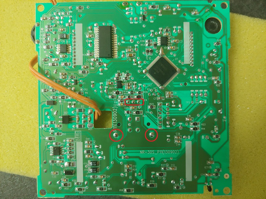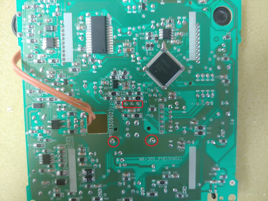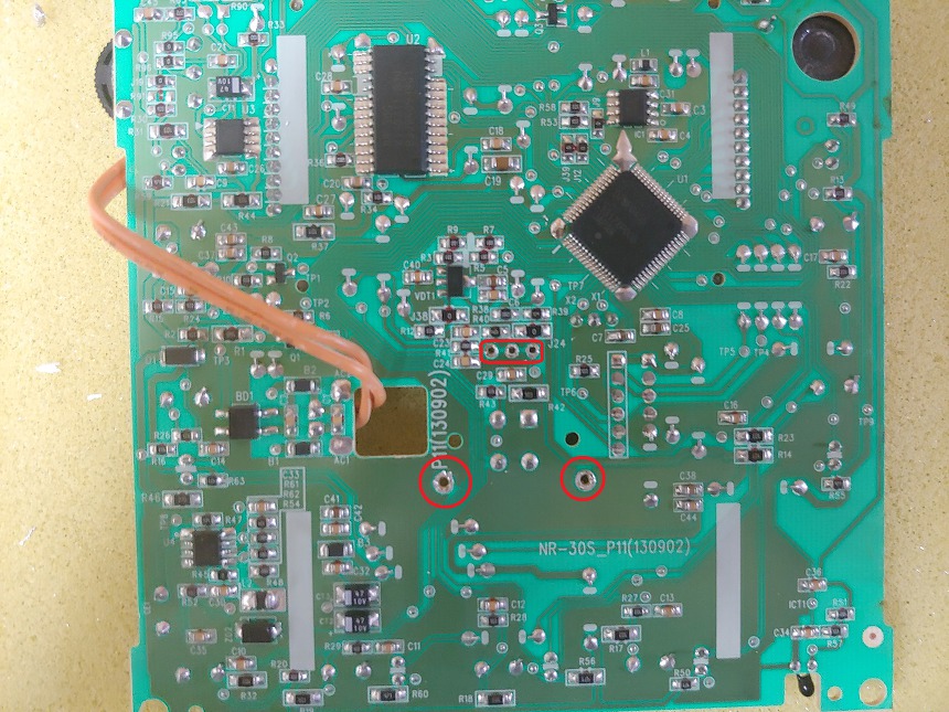STEP 4. 아래 빨간색으로 표기한 5개의 납땜을 제거해야해요. ( 전문 용어로 "디솔더"라고 하나봐요) . 초등학교 시절 과학시간에 FM라디오 납땜해서 조립한 후 다시 접해보네요.. 첫 번째 FM라디오는 실패해서 다시 하나 구입하여 성공했던 기억이 나네요.