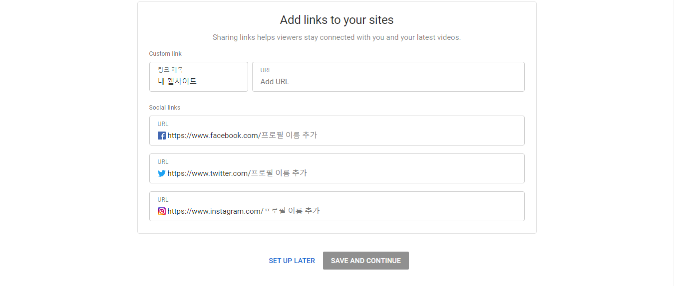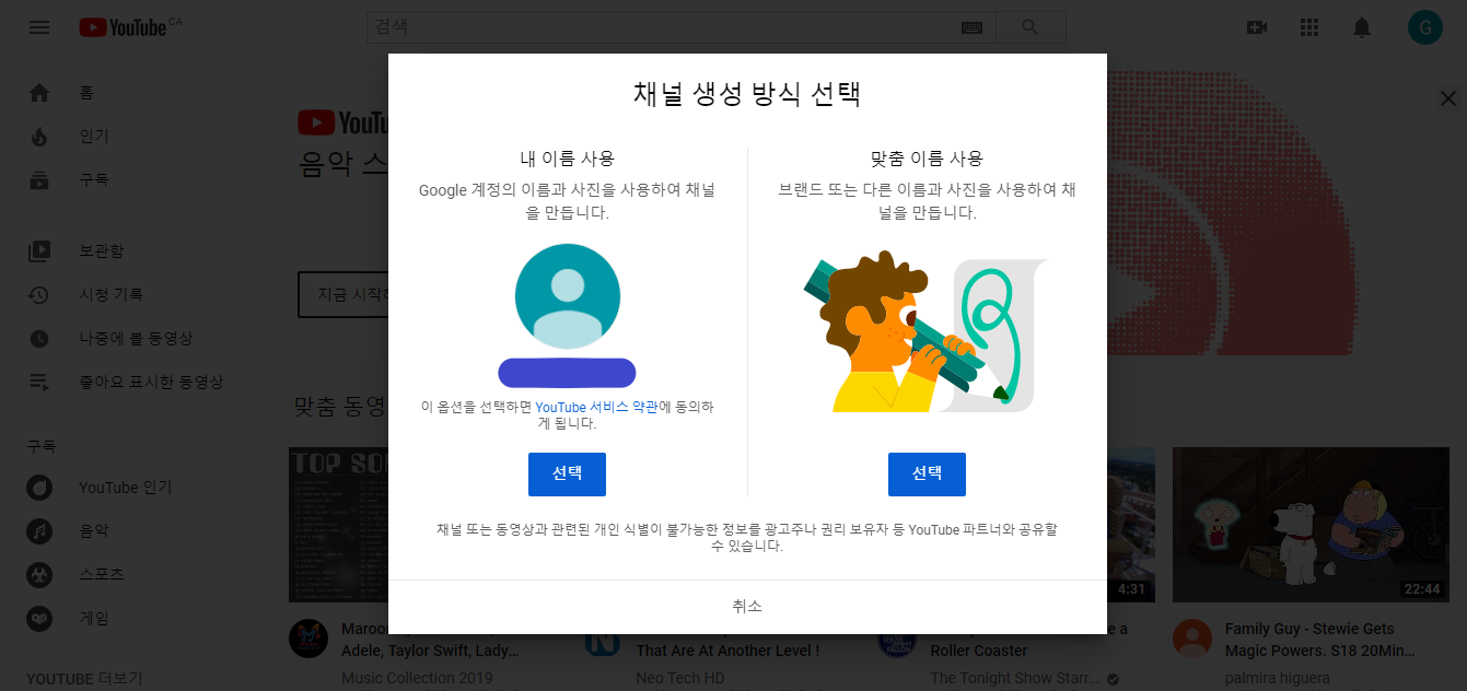 채널 생성 방식을 선택하면 되며, 나는 “내이름 사용”를 선택하였다.