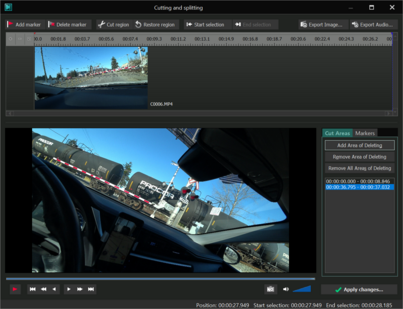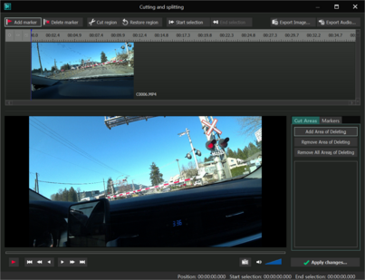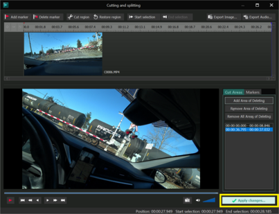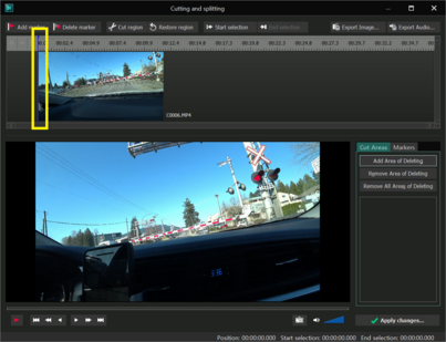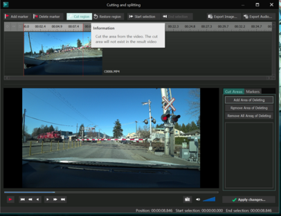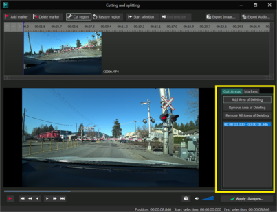 Cut Region 버튼을 클릭하면 오른쪽 하단 Cut Areas 영역에 잘려낼 구간의 시간정보가 표기된다.