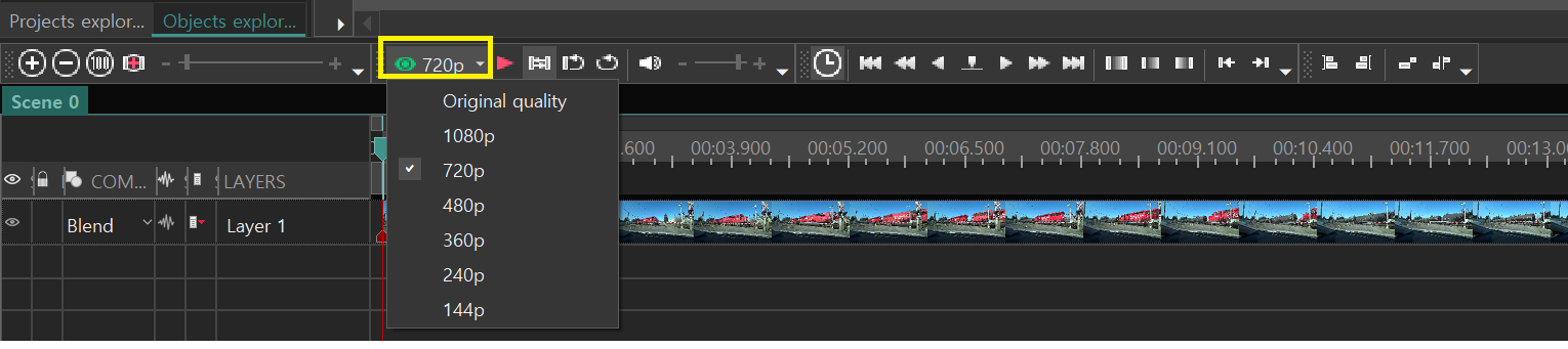 동영상 자르기 작업이 완료되었다. Layer1를 보면 다시 불러오는 작업이 구현되고 있음을 확인가능하다.