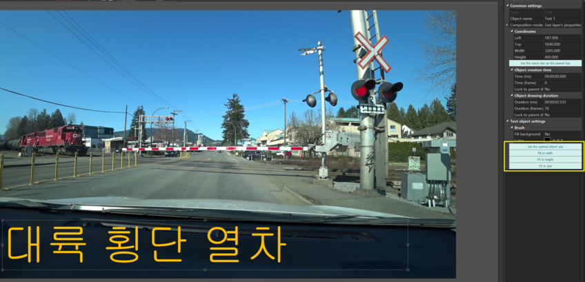 자막 위치를 정렬해보자. 아래처럼 “대륙 횡단 열차” 라는 문구를 넣었다.