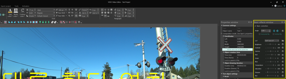 자막에 대한 Brightness, Contrast, Gamma, Red, Green, Blue, Temperature, Saturation, Sharpen, Blur등도 설정이 가능하다.
