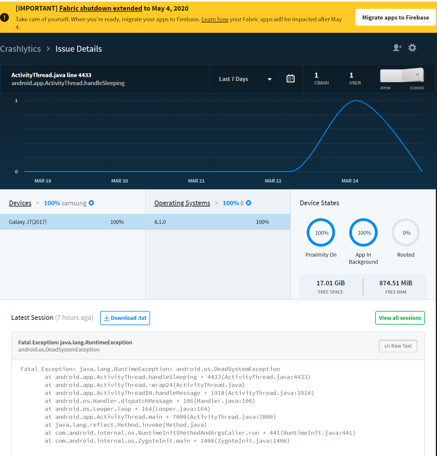 Fatal Exception: java.lang.RuntimeException: android.os.DeadSystemException