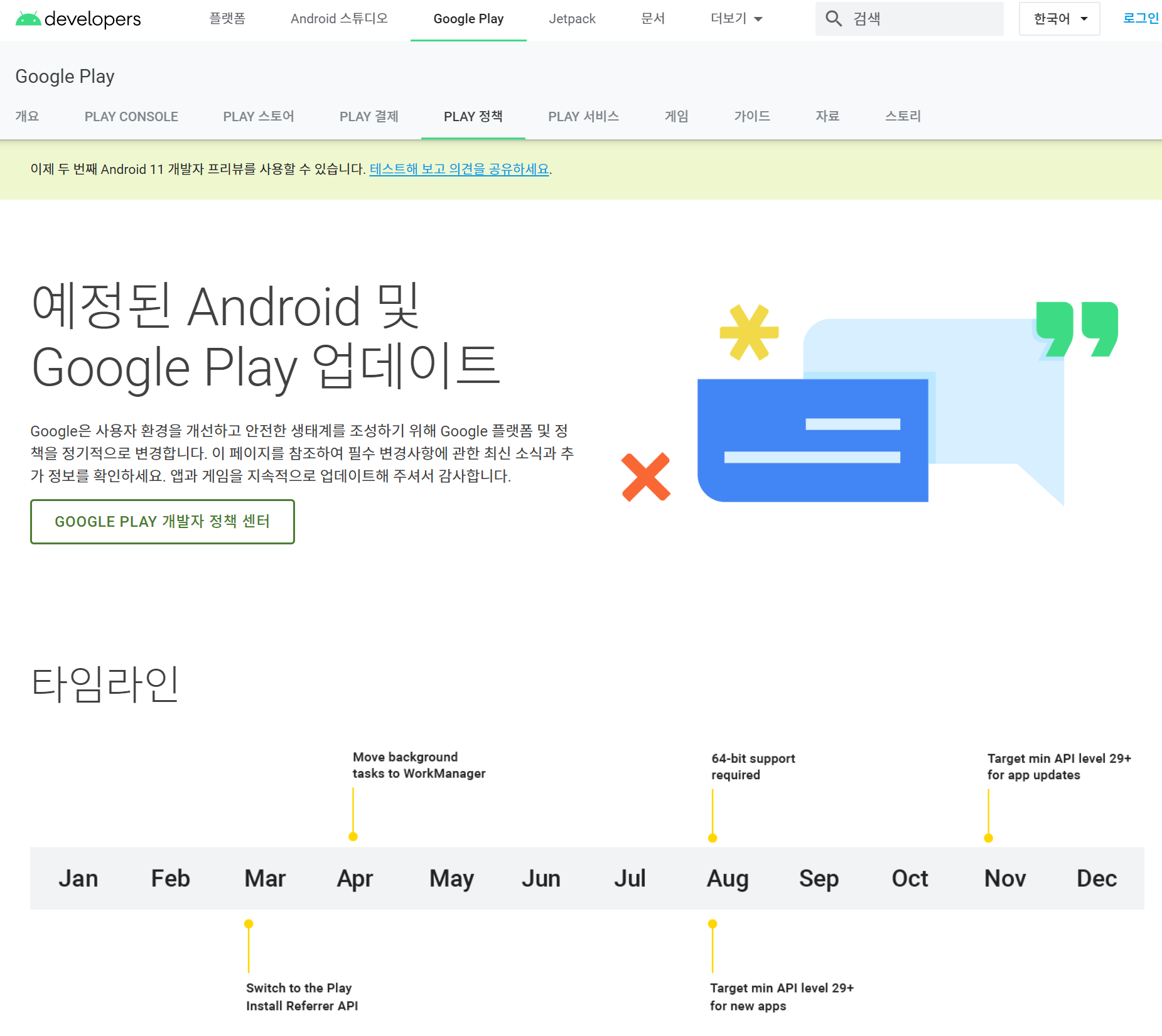 targetSdkVersion 28로 정책변경이 얼마 안된 것 같은데 벌써 새로운 정책변경 정보가 메일을 타고 도달하였다.
