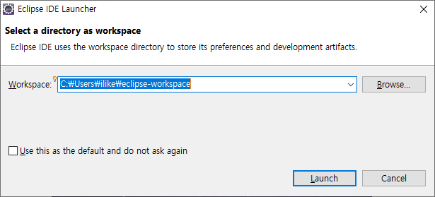 8. 이클립스를 실행하면 작업위치를 지정해야한다.