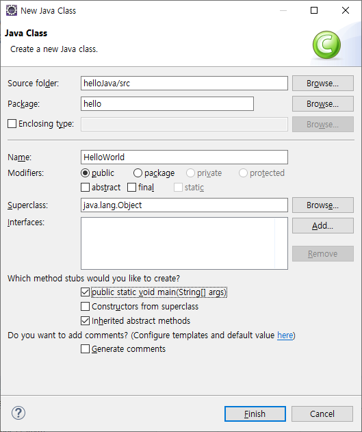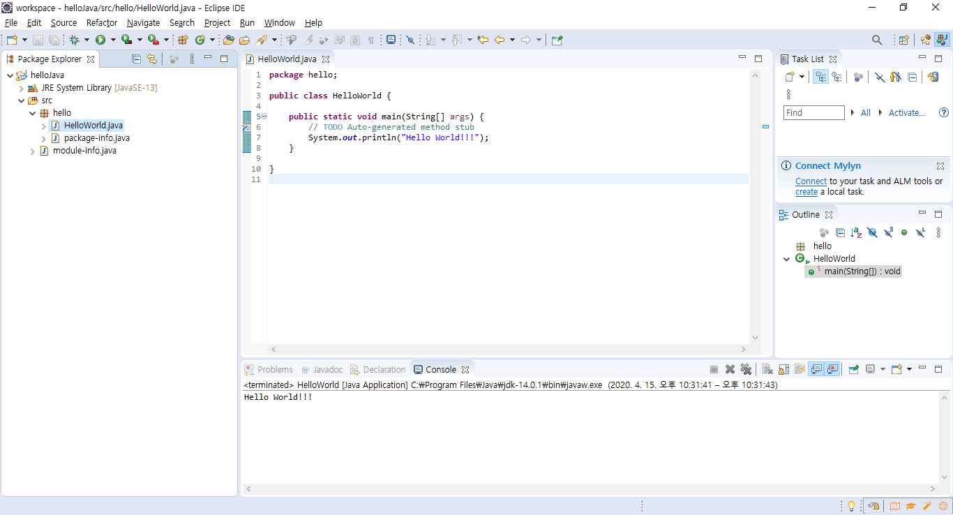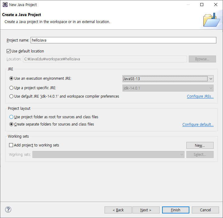 자바프로젝트를 하나 생성하여 테스트 해보자