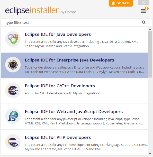 두번째 Eclipse IDE for Enterprise Java Developers를 선택한다.