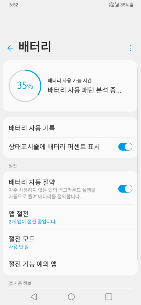 LG전자 폰의 경우 운영체제를 안드로이드 10으로 업데이트 하였음에도 불구하고 사용자가 선택할 수 있도록 “절전 기능 예외 앱” 설정 메뉴를 그대로 살려 두었다. 정말 고맙다. 삼성전자폰은 안드로이드 9로 업데이트 할 때 부터 “절전 기능 예외 앱” 메뉴를 삭제해버렸다. 그래서 사용자들에게 앱이 정상적으로 동작할 수 있도록 설정을 유도할 수 없게 막아버렸다. LG전자는 안드로이드 9로 업데이트 할 때도 “절전 기능 예외 앱” 메뉴를 그대로 살려두었다. 나는 삼성전자 폰이 싫다. 다음 폰도 LG 폰을 살 것이다. LG여 흥하라!!!