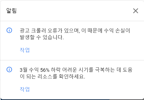 “광고 크롤러 오류가 있으며, 이 때문에 수익 손실이 발생할 수 있습니다.” 알림을 받았다.