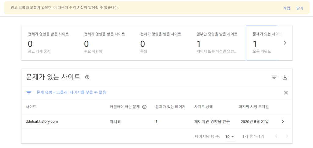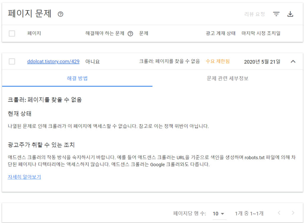 [티스토리 블로그] 광고 크롤러 오류 해결하기 (크롤러: 페이지를 찾을 수 없음)