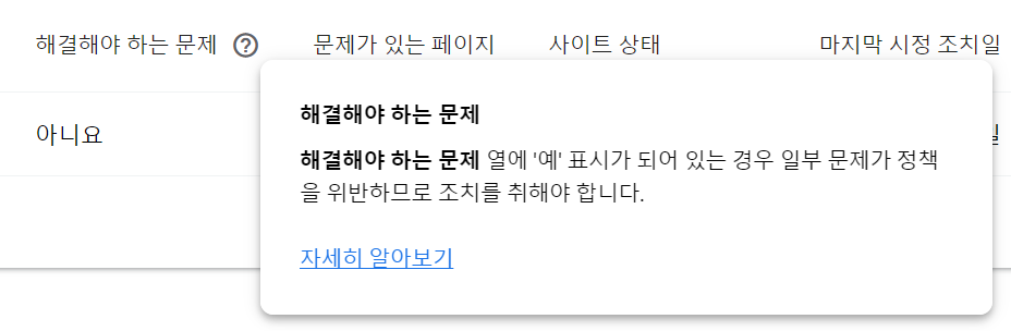 해결해야 하는 문제 영역의 결과가 “아니오” 이다. 내가 따로 해야할 일이 없다는 것이다. 그럼 왜 이런 결과가 발생한 것인가…. 자세한 정보를 보기위해 클릭하였다.