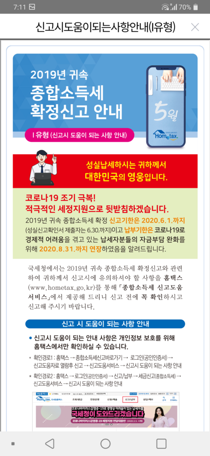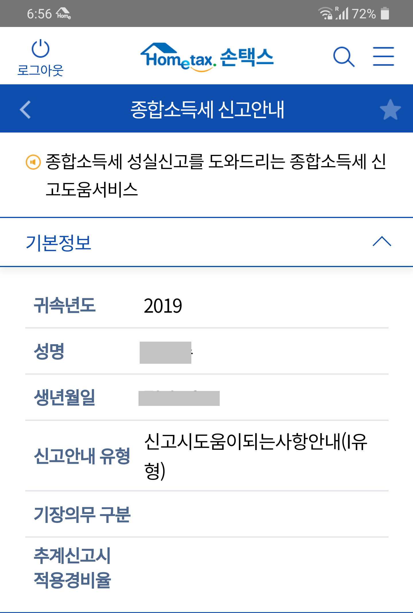 종합소득세 신고하기 (신고 안내 유형이 I형인 경우)