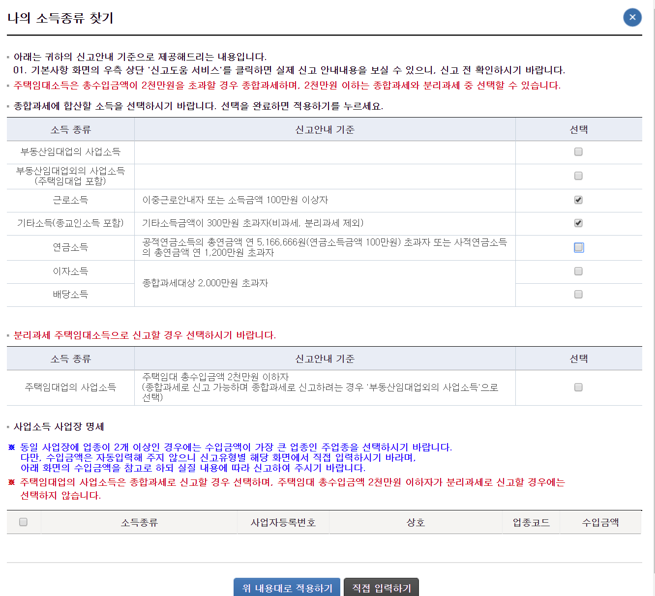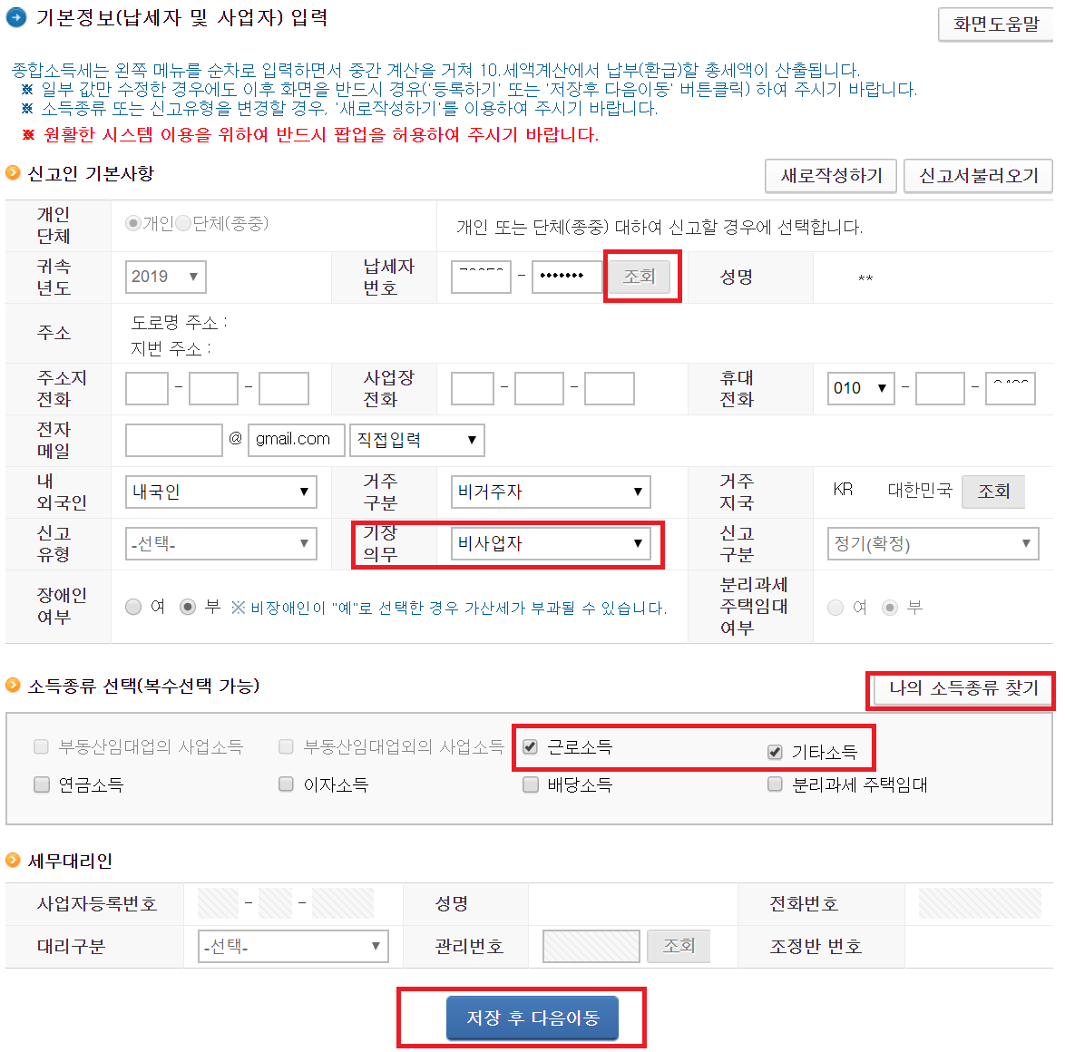 나는 2019년 8월에 퇴직하여, 근로소득이 있는 관계로 근로소득이 있어서 근로소득을 체크하였다. 근로소득이 없다면 기타소득만 체크하면된다.