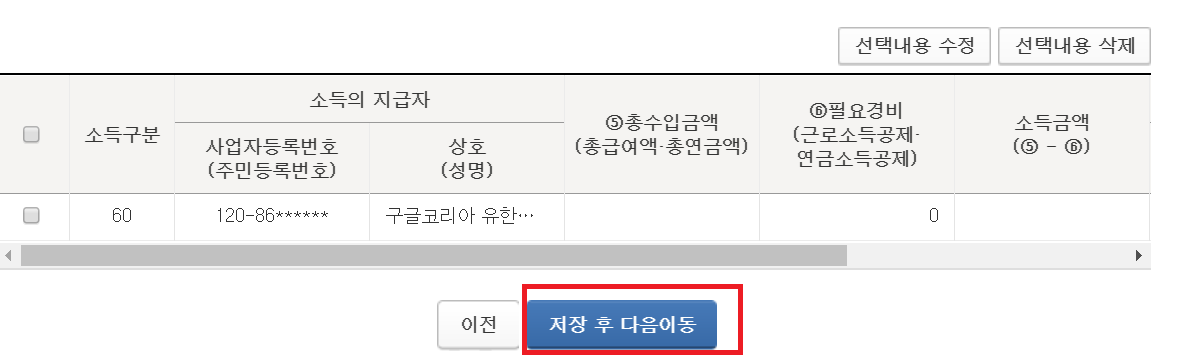 기타소득을 입력하려면, 구글코리아 사업자 등록번호가 필요하다.
