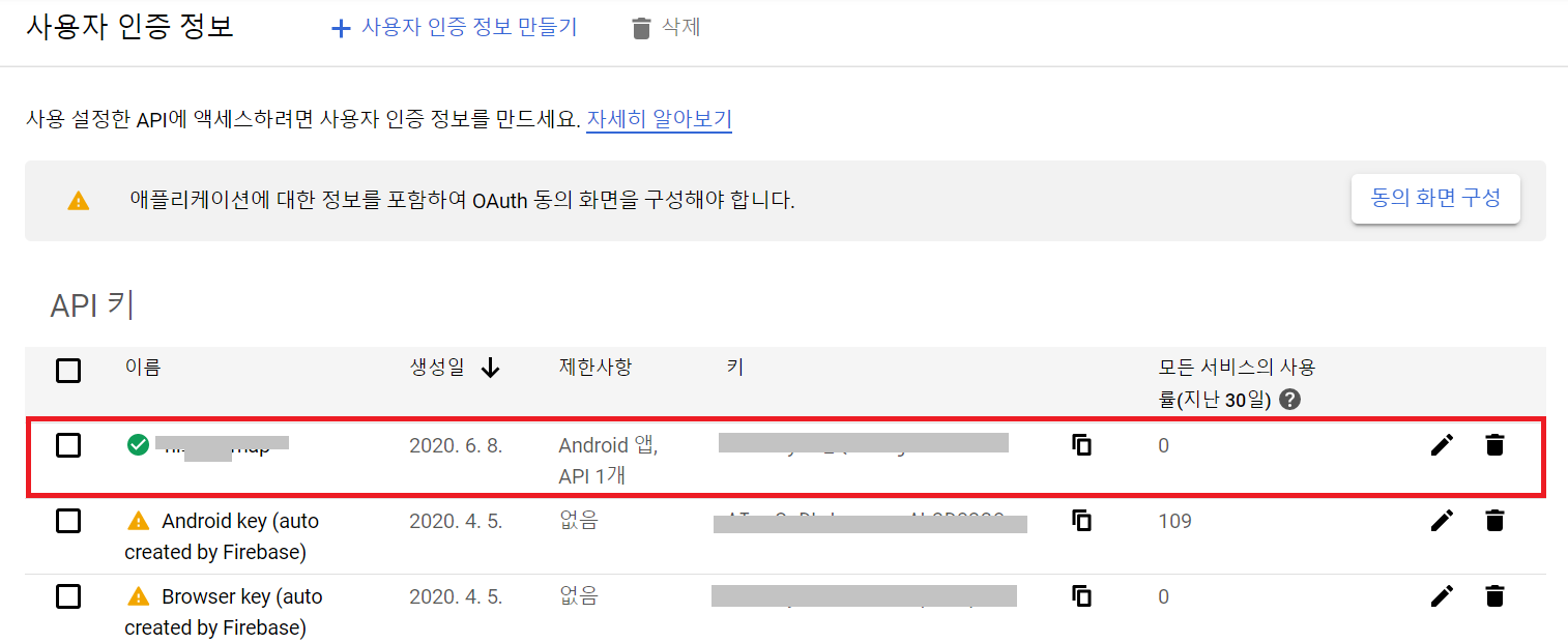 저장 버튼을 클릭 하면 새로 생성된 키를 확인할 수 있다.