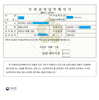 종합소득세 신고를 완료 후 국세전자납부확인서를 발급받았다.