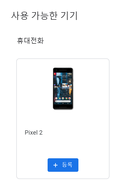픽셀2 폰을 소유하고 있음으로 사용 가능한 기기에 나타나며, 등록버튼을 클릭 한다. 그러면 약관 팝업이 나타난다.