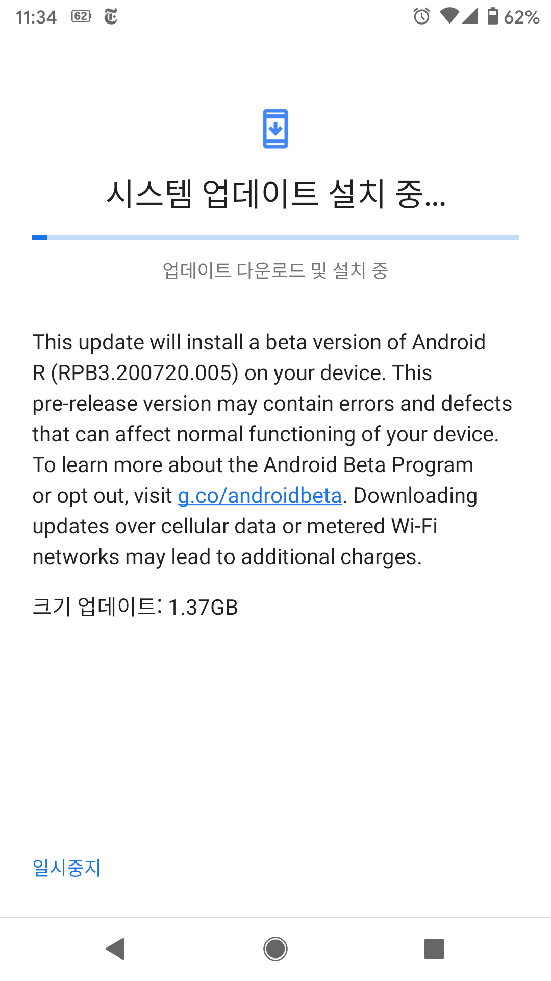 ■ 안드로이드 11 베타 버전 업데이트 받기