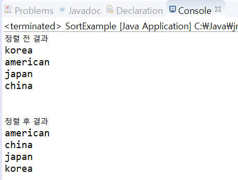 System.out.print("nn정렬 후 결과n");