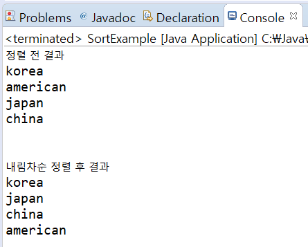 System.out.print("nn내림차순 정렬 후 결과n");