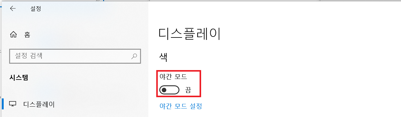 어두운 곳에서 화면을 볼 경우 눈의 피로도가 증가한다. 휴대폰에도 블루라이트 차단 기능이 있다. 즉 야간모드이다. 윈도우10에도 야간모드를 설정을 지원한다.