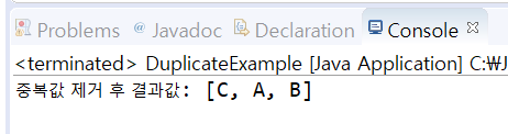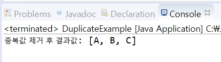 System.out.println("중복값 제거 후 결과값: "+ arrayList.toString() );