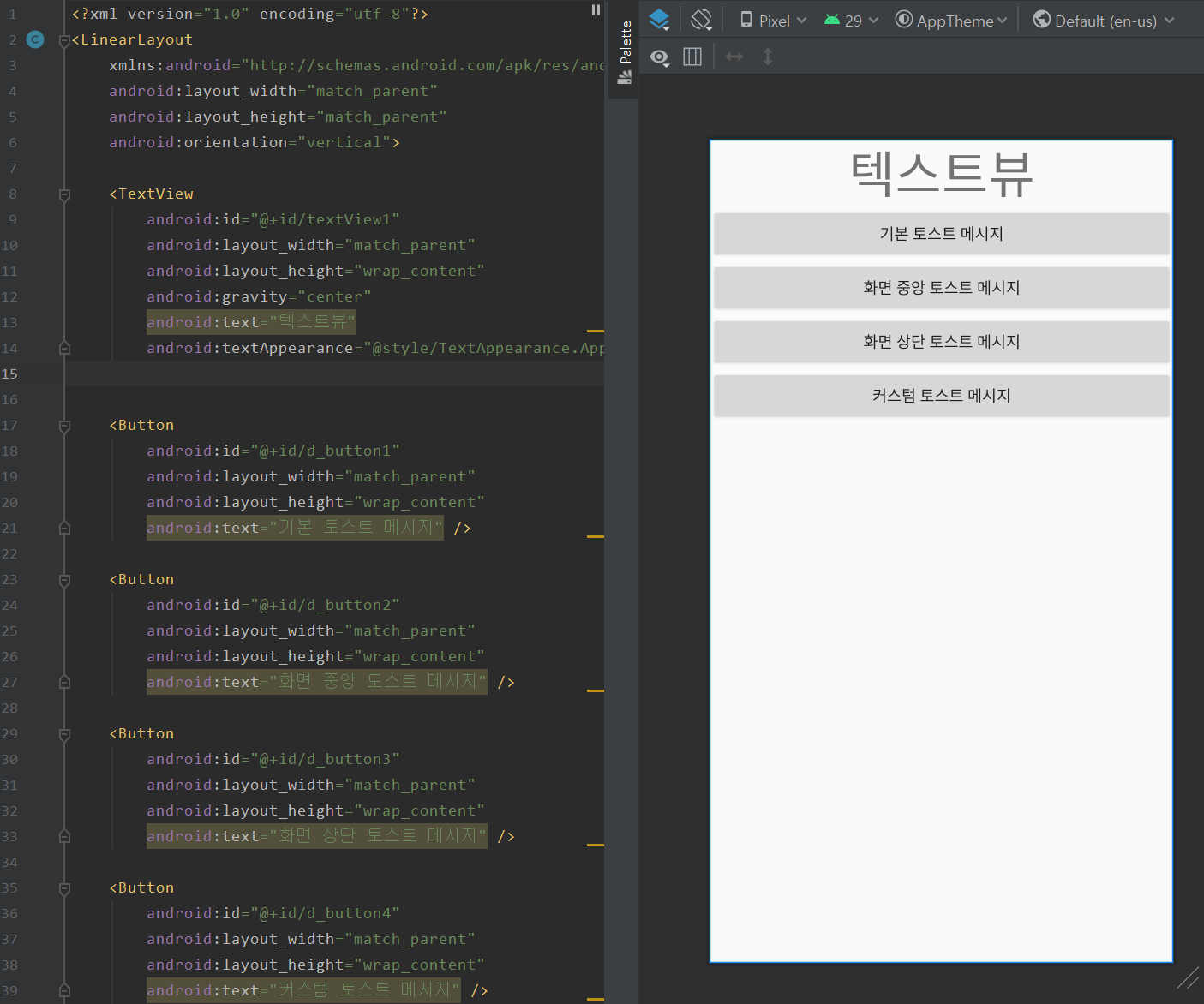 토스트 메시지를 띄우기 위해 코드를 먼저 살펴보자.
