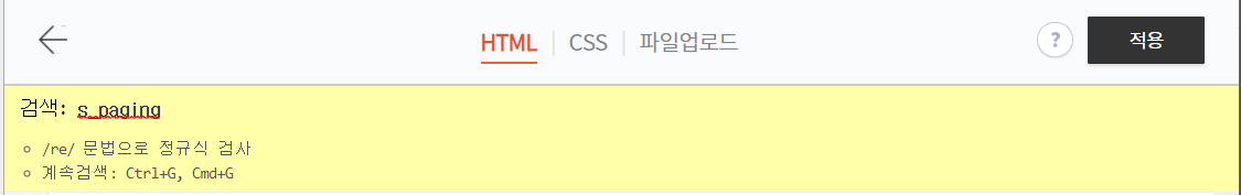CTRL + F 단축키를 눌러 검색어로 s_paging를 검색하여 찾아간다.