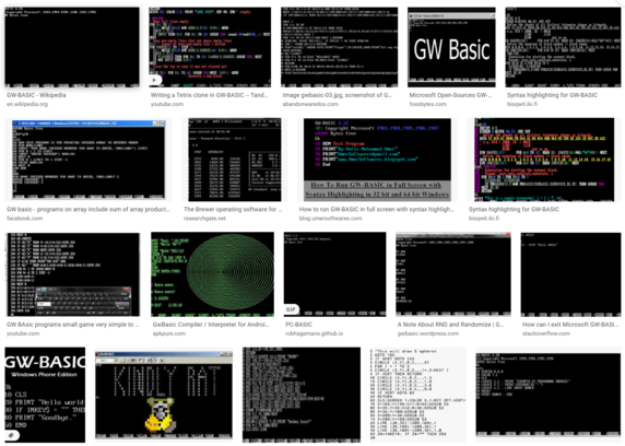 구글에서 gw-basic으로 이미지 검색을 하면 반가운 코드 화면들을 만나볼 수 있다.