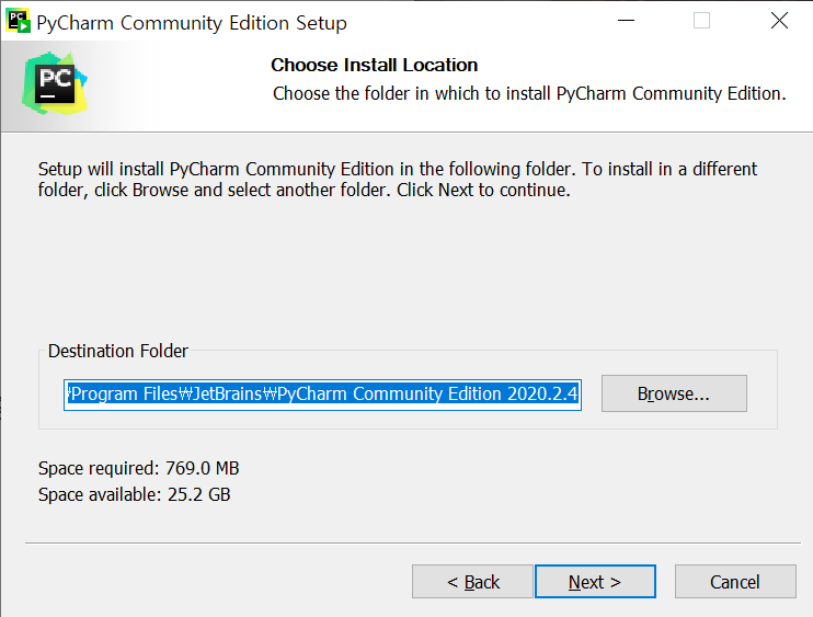 다운로드 파일(pycharm-community-2020.2.4.exe)의 크기는 296MB 입니다.