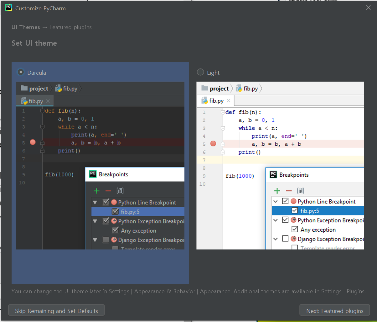 6. Skip Remaining and Set Defaults 버튼을 클릭하여 설정을 마무리합니다.