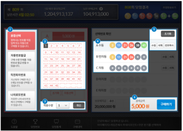 - 초기화 : 선택번호 확인 영역 모든 번호를 삭제할 수 있습니다.