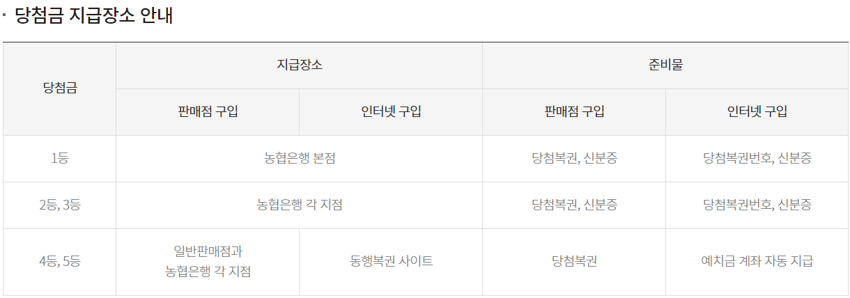 - 당첨금은 농협은행 영업점에서만 지급받으실 수 있습니다. (지역농·축협 제외)