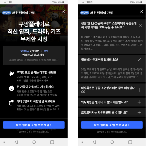 와우 멤버십 가입하기 전 자주 묻는 질문을 꼭 확인하세요.