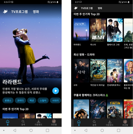8.쿠팡플레이 메인화면에 도착하였습니다. 어떤 컨텐츠가 있는지 둘러봅니다.