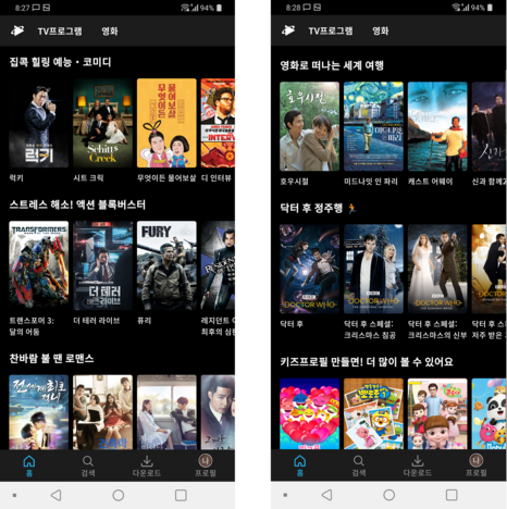 집콕 힐링 예능&코미디, 스트레스 해소! 액션 블록버스터, 찬바람 불 땐 로맨스영화로 떠나는 세계 여행, 닥터 후 정주행, 키즈프로필 만들면! 더 많이 볼 수 있어요.
