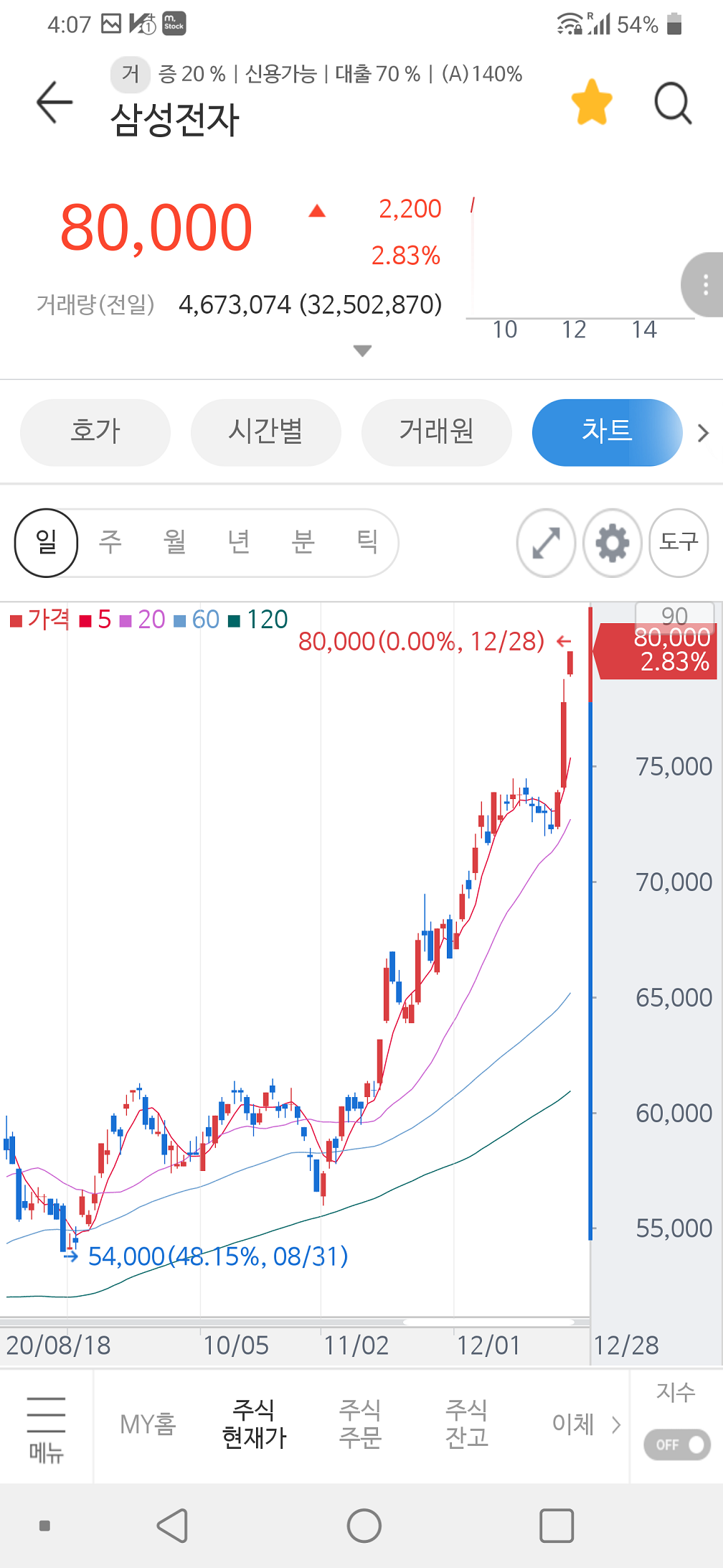 삼성전자 주가 8만원 찍다!! 수익률 78%