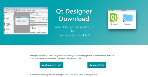 Install Qt Designer on Windows or Mac. Only 40MB!