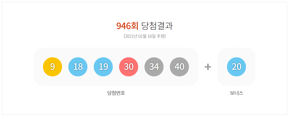 946회 로또 당첨번호 (추첨일 2020.01.16)